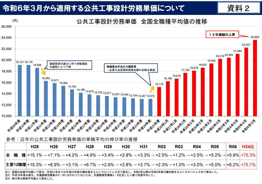 出典:国土交通省 令和6年3月から適用する公共工事設計労務単価について